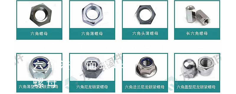 法蘭面螺母(GB6177/DIN6923)、法蘭面螺母尼龍鎖緊螺母(DIN6926)、四角焊接螺母(DIN928)、六角焊接螺母(DIN929)、蝶帽(GB62、DIN315、美制)、K帽等。2、合金鋼國標螺母的標準尺寸為5/16-4"。合金鋼國標螺母包 2型六角螺母細牙GB/T 6176—2000;六角法蘭面螺母GB/T 6177.1—2000。六角法蘭面螺母細牙GB/T 6177.2—2000;1型六角開槽螺母—A和B級GB 6178—86;1型六角開槽螺母—C級GB 6179—86;2型六角開槽螺母—A和B級GB
