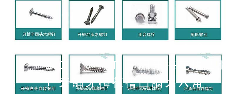 六角頭螺釘Hex cap screw與大六角螺栓Hex bolt 顧名思義為頭部為六角型的外螺紋扣件,設計為使用扳手轉動。依照ASME B18.2.1標準,六角頭螺釘(Hex cap screw)較一般的大六角螺栓(Hex bolt)的頭高和桿長公差小,因此ASME B18.2.1六角 1.機螺釘 2.自攻螺釘 3.鉆尾螺釘 4.墻板釘 5.纖維板釘 6.木螺釘7.六角木螺釘 8.不脫出螺釘 9.組合螺釘 10.微型螺釘 11.家具螺釘 12.電子螺釘頭型:1.六角頭(hexagon head) 2.六角頭法蘭面(hexagon head with flange) 3.