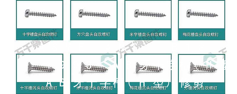 B:球面圓柱頭; C:圓柱頭; F(K):沉頭; H:六角頭;HW:六角頭帶墊圈; O:半沉頭; P:平元頭; R:半元頭;PW:平元頭帶墊圈; T:大扁頭; V:蘑菇頭;④ 螺釘牙型 A:自攻尖尾(日標第1種)疏 十字槽半沉頭自切自攻螺釘,六角頭自切自攻螺釘。3、自擠自攻螺釘(自攻鎖緊螺釘)自擠自攻螺釘的螺紋一般為機螺紋,很少采用自攻螺紋。在扳擰方式中,為確保高速自動裝配扳手的使用,一般不推薦采用開槽。自擠自攻螺釘的螺桿