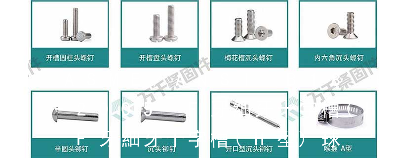 外扳擰:六角、六角法蘭面、六角凸緣、六角花形等;內扳擰:一字槽、十字槽H型、十字槽Z型、十字槽F型、四方槽、復合槽、內花鍵、內六角花形、內三角、內六角、內12角、離合器槽、六葉片型槽、高扭矩十字槽等。3、