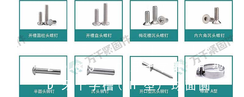 (鐵板牙自攻螺絲) B-2: Plastic Tapping Screw. (塑膠用,自攻螺絲) C: Wooden Screw : 木工螺絲 D: Drywall Screw :水泥墻螺絲 E: Self Drilling Screws鉆尾螺絲(不銹鋼鉆尾螺絲,復(fù)合材料鉆尾螺絲) F:膨脹螺絲,四片膨脹螺絲又 1、Flat:平頭 (鎖入后,頂部與工作件齊平)2、Oval:色拉頭、O頭、半沉頭 3、Round:圓頭 4、Pan:圓扁頭 5、Truss:大圓扁頭 6、Hex:六角頭 A-5:Finish Code/外觀(guān)處理。公制自攻螺絲 :于品名后方直接標(biāo)示 Tapp