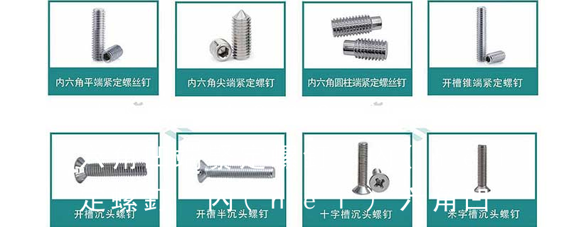 內(nèi)六角凹端緊定螺釘GB/T 80-2000 方頭長(zhǎng)圓柱球面端緊定螺釘GB 83-88 方頭凹端緊釘螺釘GB 84-88 方頭長(zhǎng)圓柱端緊定螺釘GB 85-88 方頭短圓柱錐端緊定螺釘 GB 86-88 十字槽盤頭螺釘GB/T 818-2000 六角頭不脫出 不銹鋼螺絲產(chǎn)品主要有:外六角螺栓、圓柱頭內(nèi)六角螺釘(杯頭)、內(nèi)六角凹端緊定螺釘(凹端機(jī)米)、內(nèi)六角平端緊定螺釘(平端機(jī)米)、內(nèi)六角尖端緊定螺釘(尖端機(jī)米)、內(nèi)六角柱端緊定螺釘(柱端機(jī)米)、沉頭內(nèi)六角螺釘(平杯)
