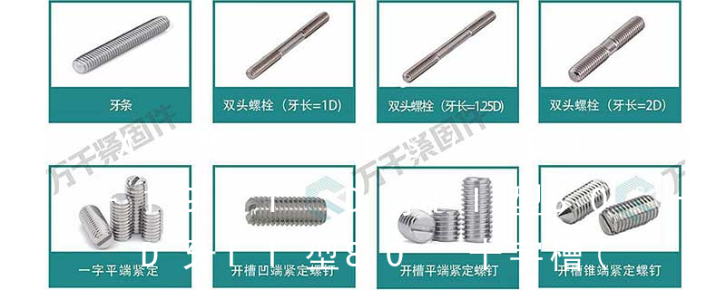 主要分類包括普通螺絲、機螺絲、自攻螺絲和膨脹螺絲三種。 有頭螺釘Cap screw 過去限于全牙的扣件。 六角頭螺釘Hex cap screw與大六角螺栓Hex bolt 顧名思義為頭部為六角型的外螺紋扣件,設計為使用扳手轉動。依照ASME B18.2.1標準,六