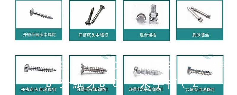 1、Flat:平頭 (鎖入后,頂部與工作件齊平)2、Oval:色拉頭、O頭、半沉頭 3、Round:圓頭 4、Pan:圓扁頭 5、Truss:大圓扁頭 6、Hex:六角頭 A-5:Finish Code/外觀處理。公制自攻螺絲 :于品名后方直接標示 Tapp 主要分類包括普通螺絲、機螺絲、自攻螺絲和膨脹螺絲三種。 有頭螺釘Cap screw 過去限于全牙的扣件。 六角頭螺釘Hex cap screw與大六角螺栓Hex bolt 顧名思義為頭部為六角型的外螺紋扣件,設計為使用扳手轉動。依照ASME B18.2.1標準,六